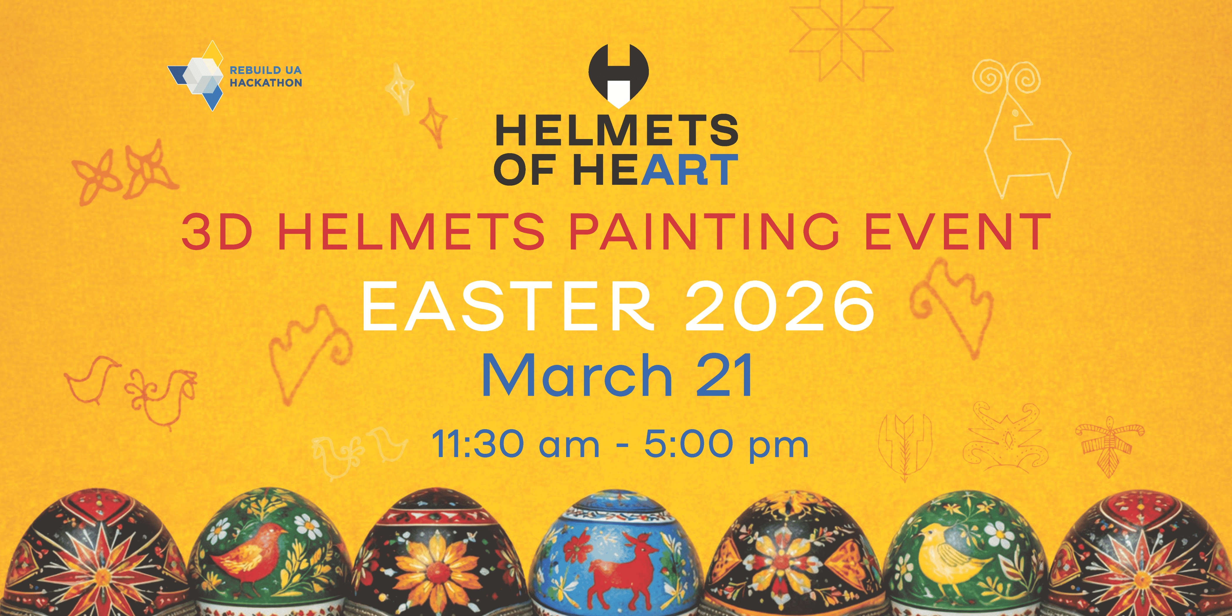 ✨ What to ExpectCreate Your Own 3D Helmet: Paint and decorate a custom 3D-printed helmetFrontline Helmets from Ukraine: Painted by talented Ukrainian artistsWax pysanka technique on real eggs with KhrystynaAll Materials Included: Friendly guidance throughout the activityUkrainian Art Pop-Up: Unique works of art, city nameplates, T-shirts and bags created by Ukrainian artistsSnacks & Refreshments: Light bites for families to enjoyWarm, Welcoming Atmosphere: Meaningful conversations, creativity, and new friendships