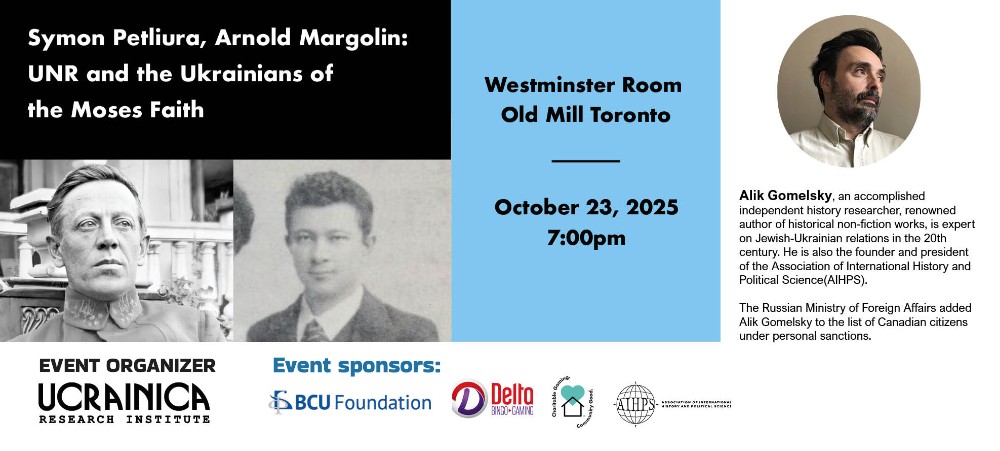 The Ucrainica Research Institute is pleased to invite you to a lecture by Alik Gomelsky titled: “Symon Petliura, Arnold Margolin: UNR and the Ukrainians of the Moses Faith.”