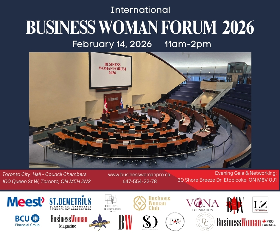 Business Woman PRO Canada warmly invites members of the Ukrainian Canadian community to attend the Business Woman Forum 2026, taking place on February 14, 2026, at Toronto City Hall.