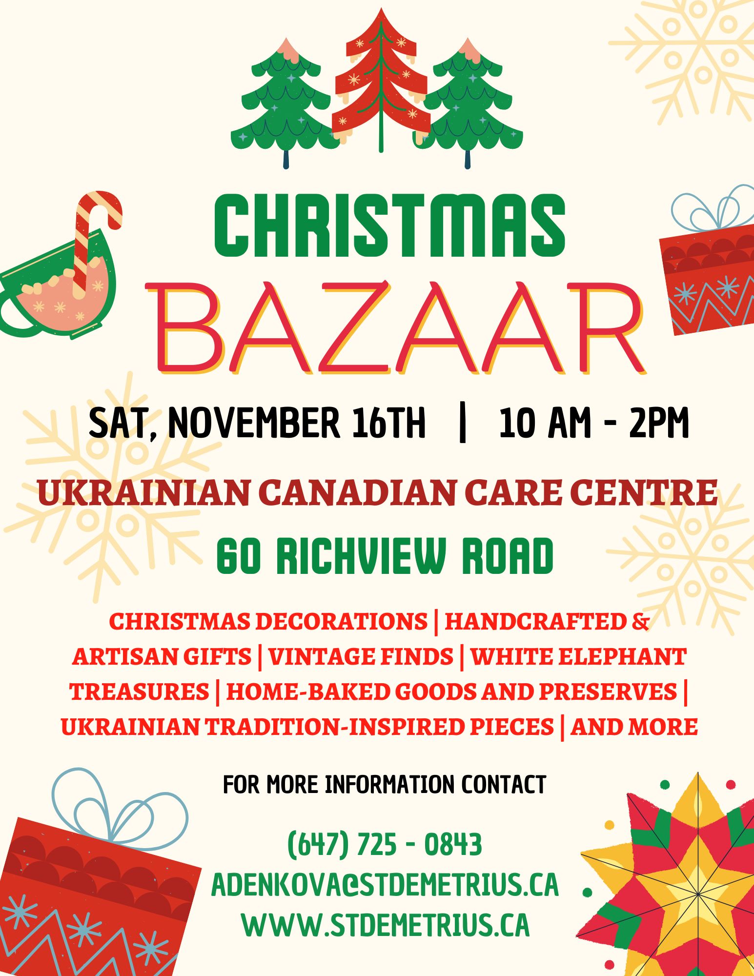 You will find wonderful treasures from Christmas Decorations, Handcrafted & Artisan gifts, Vintage Finds, White Elephant Treasures, Home-Baked Goods and Preserves, Ukrainian Tradition-Inspired Pieces, and More ....