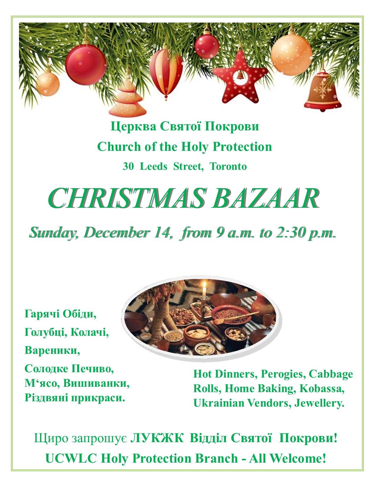 Christmas bazaar featuring hot lunch, Ukrainian food and vendors