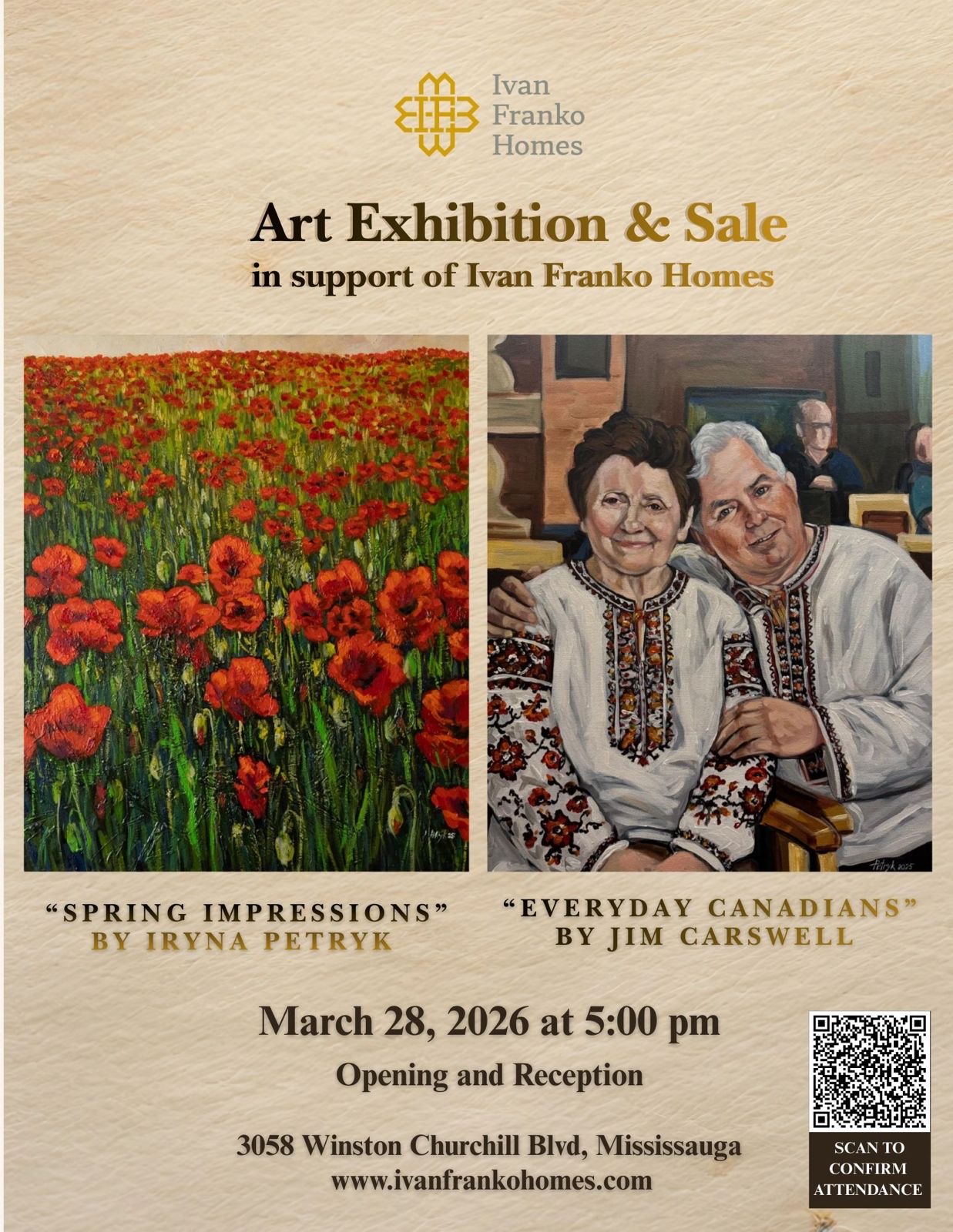 Join us for a special evening celebrating art, culture, and community at the Art Exhibition & Sale supporting Ivan Franko Homes.This exhibition features two remarkable collections: “Spring Impressions” by Iryna PetrykA vibrant series capturing the beauty and energy of spring.“Everyday Canadians” by Jim CarswellA heartfelt collection portraying the people and stories that shape our communities.