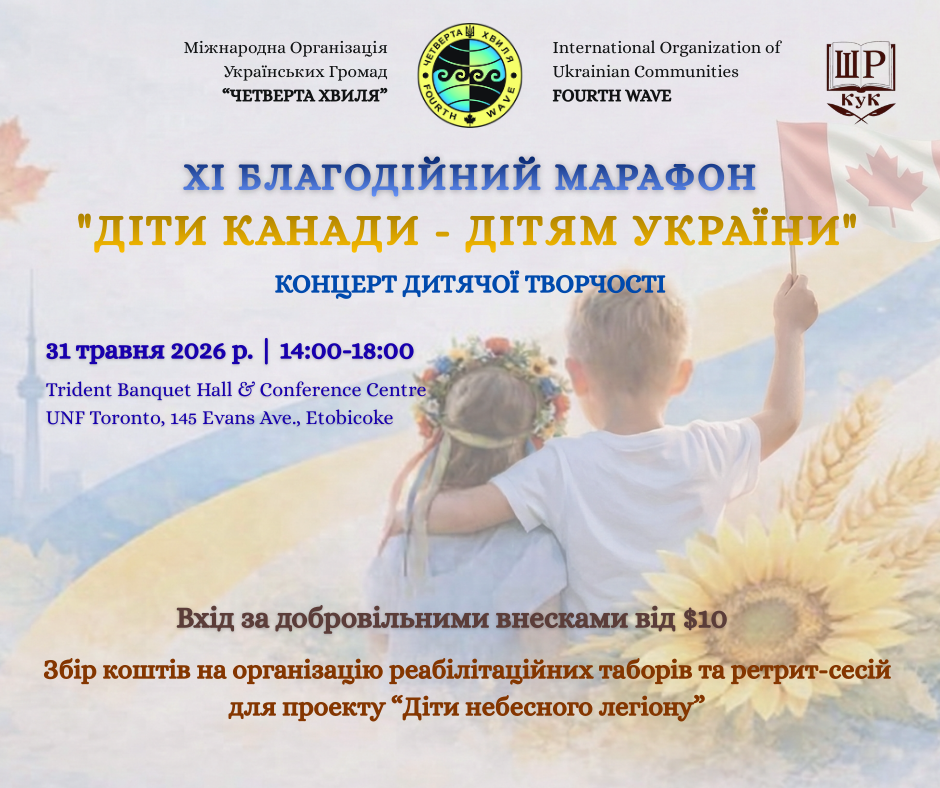 Благодійний Марафон "Діти Канади - дітям України" – це концерт дитячої творчості, присвячений талантам юних виконавців з української громади Торонто та околиць.